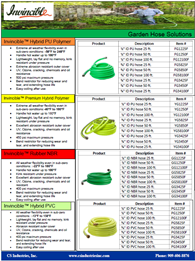 INVINCIBLE™ water hoses are manufactured to meet or exceed industry requirements while giving customers the features they've always wanted: lightweight construction for ease of handling, rugged outer shell for increased life, and flexible materials for kink-free usage.